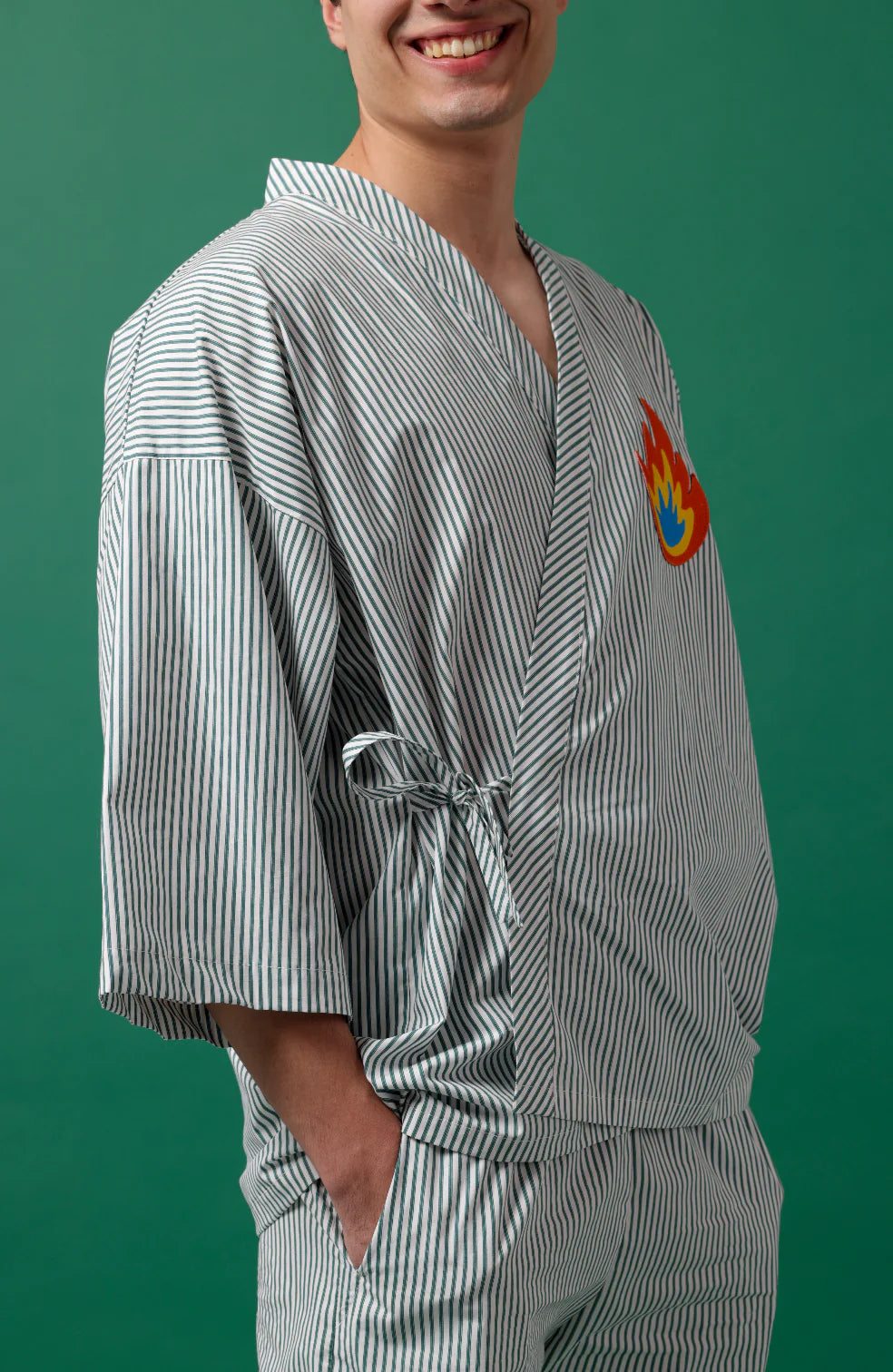 İllüstrasyonlu Unisex Sargı Nakışlı Kimono