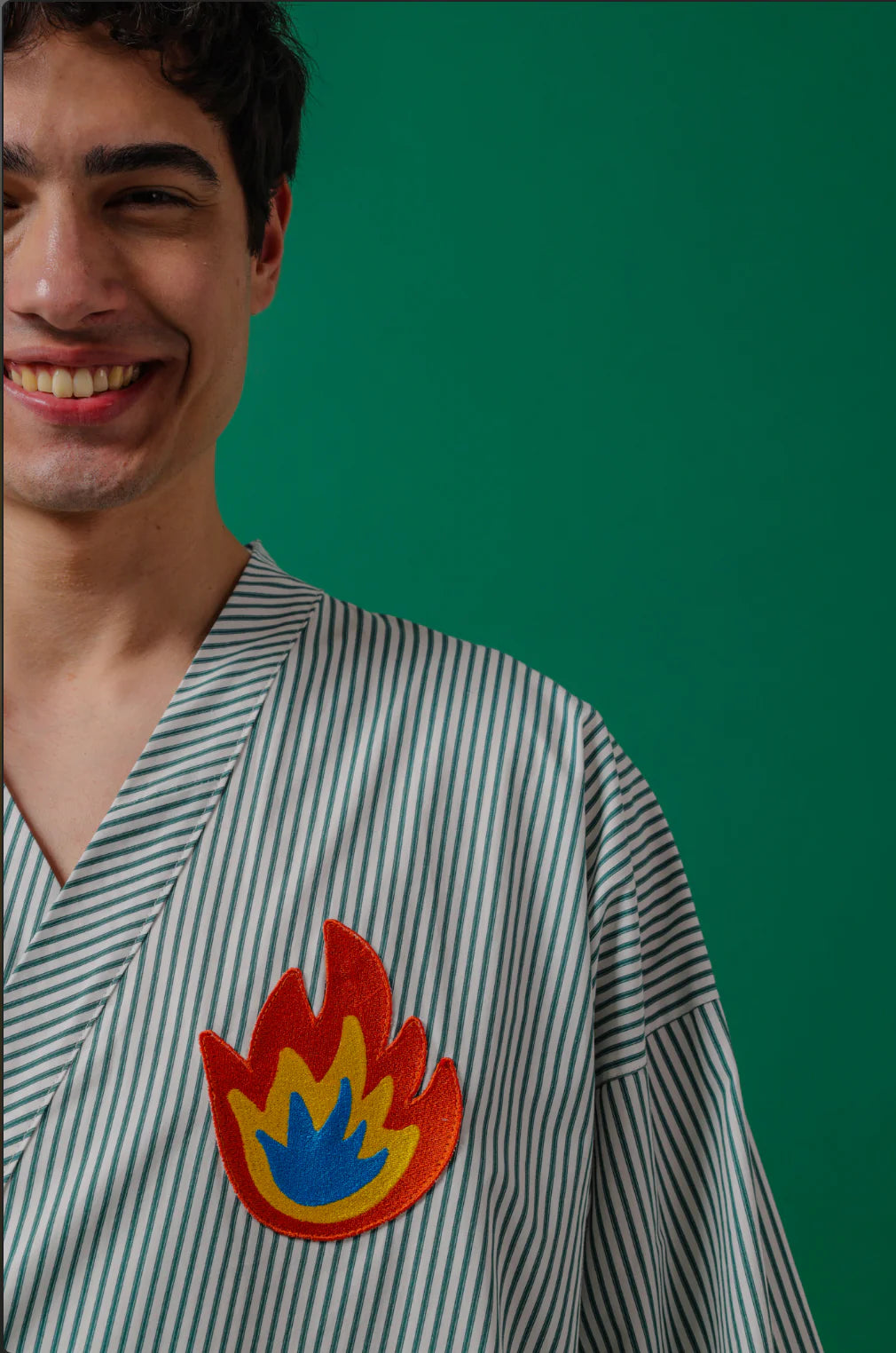 “Heart Beast” Illustrated Unisex Embroidered Wrap Kimono & Shorts Set