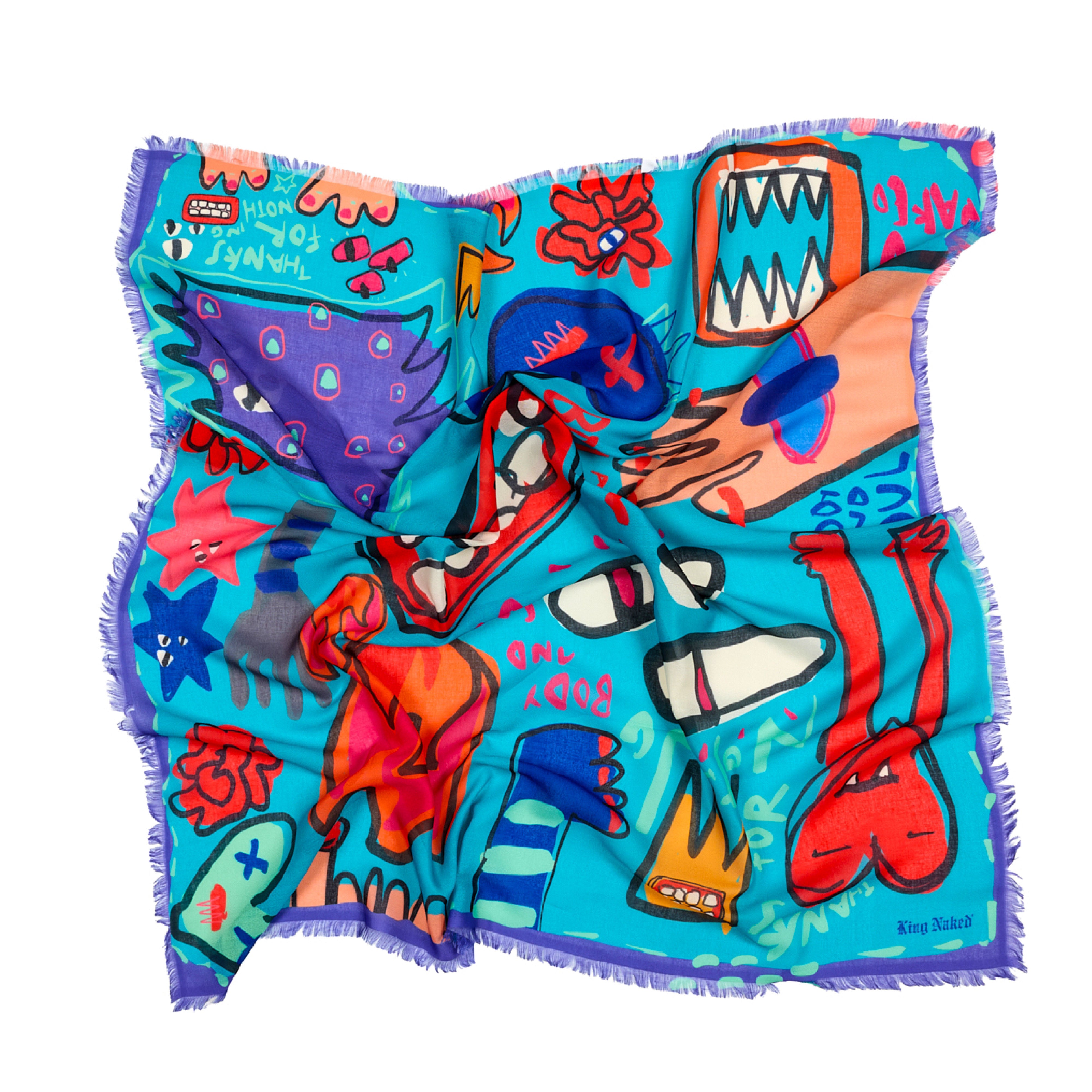 İllüstrasyonlu Kare Şal