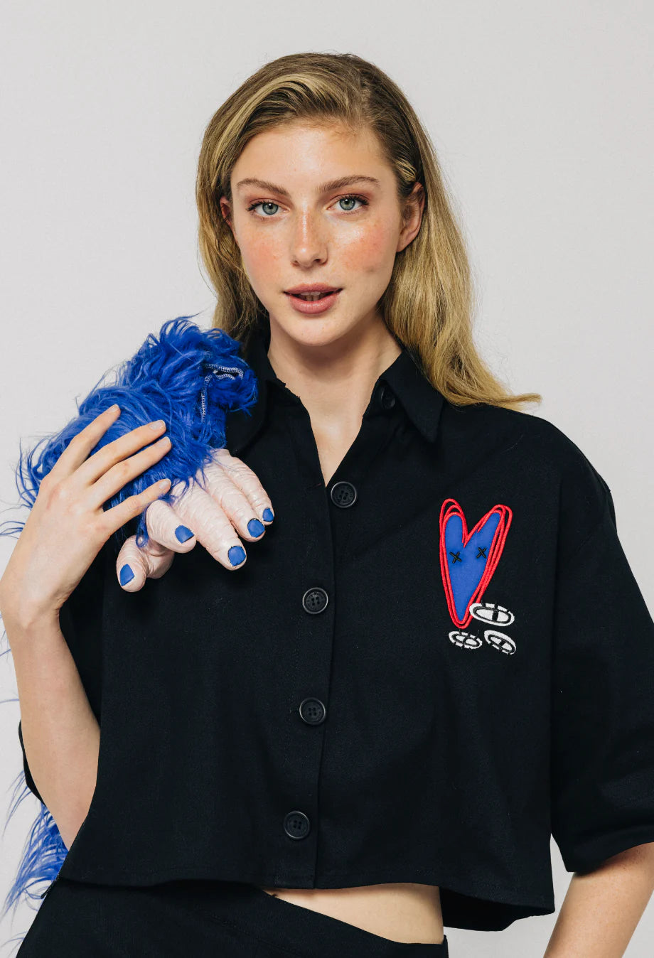 İllüstrasyonlu Dokuma Crop Ceket