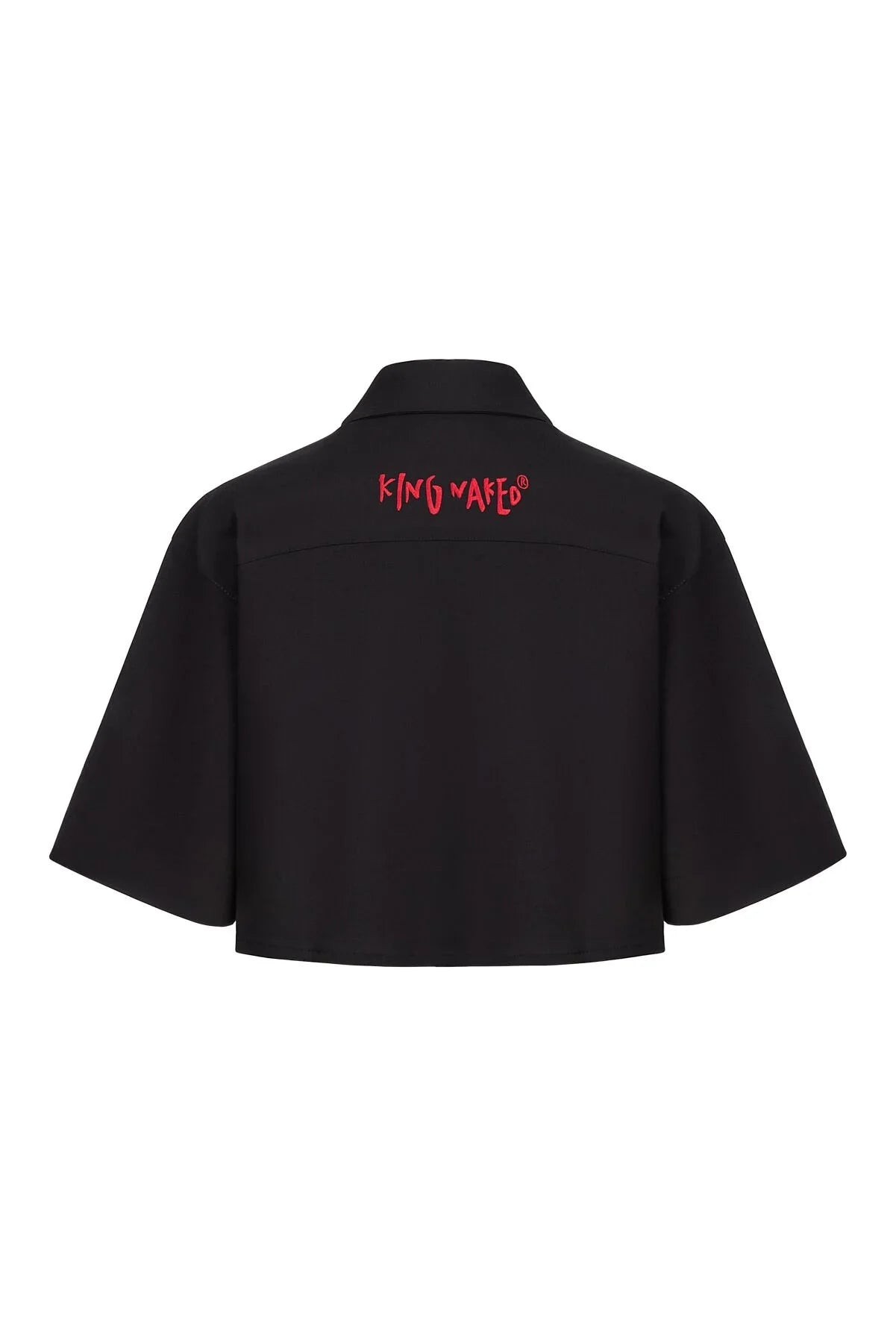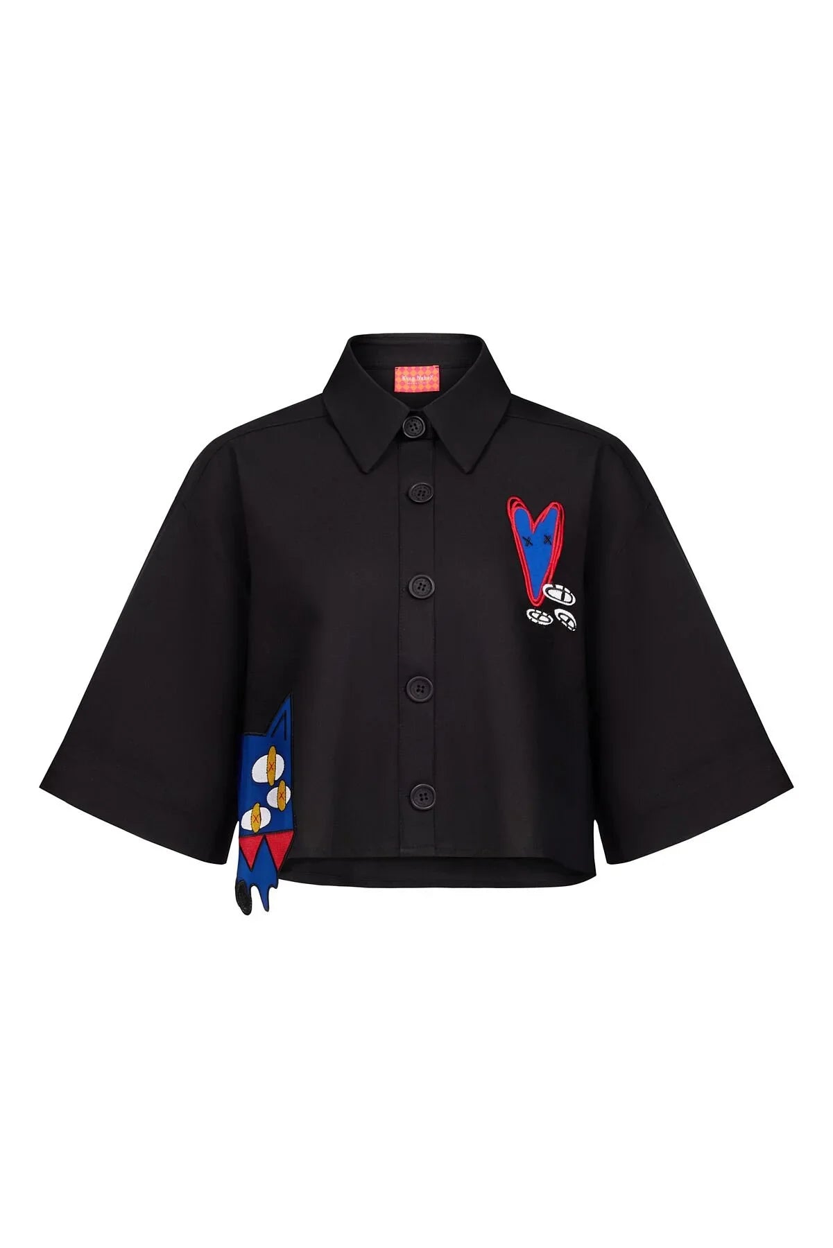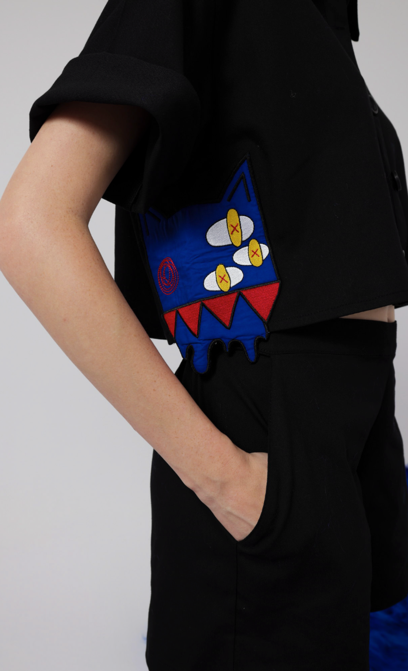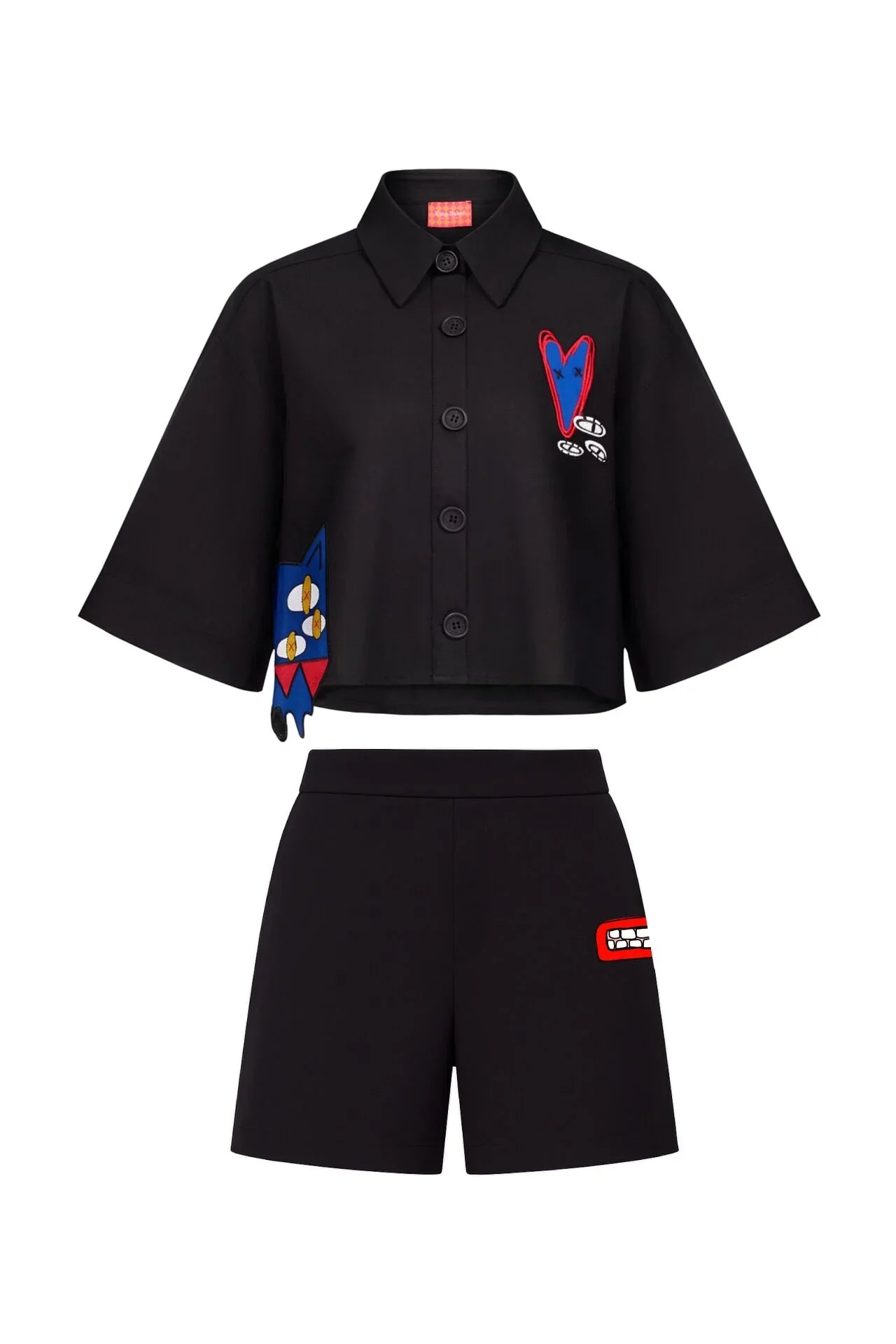 İllüstrasyonlu Dokuma Crop Ceket & Şort Takım