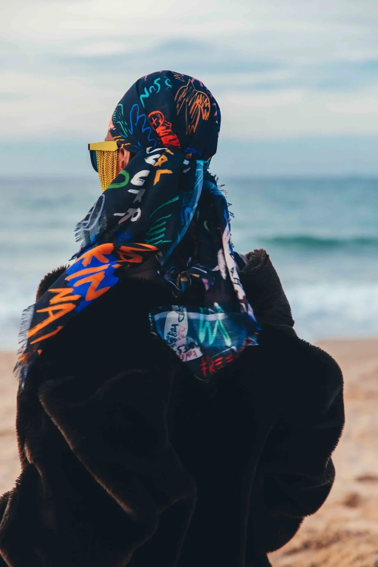 İllüstrasyonlu Kare Şal