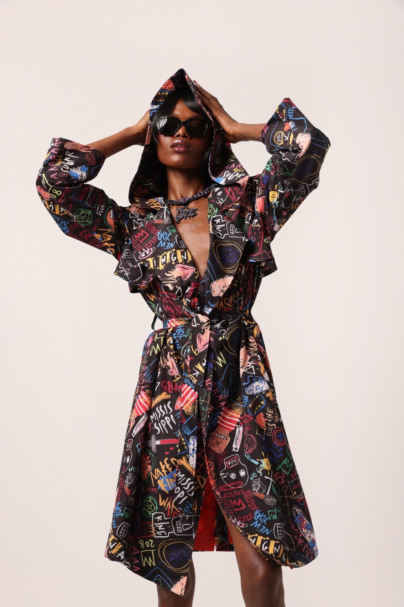 İllüstrasyonlu Unisex Trençkot