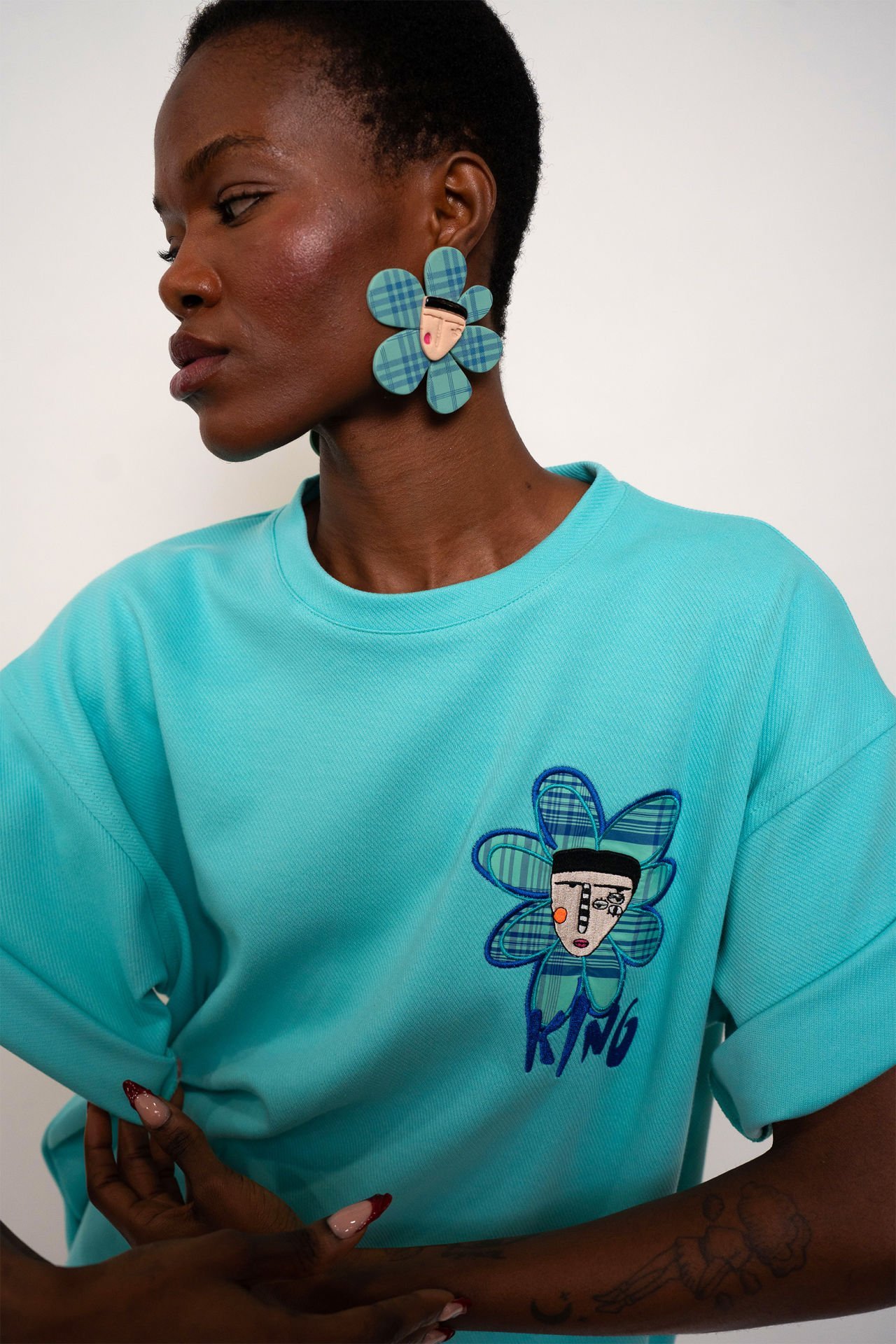 Renk: Mint Mavi Ekose / Reçine detaylı
