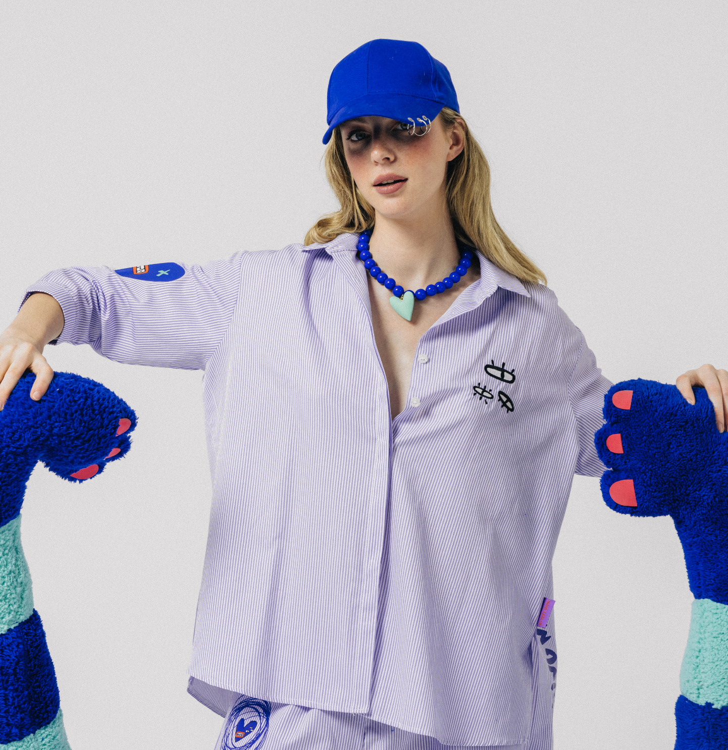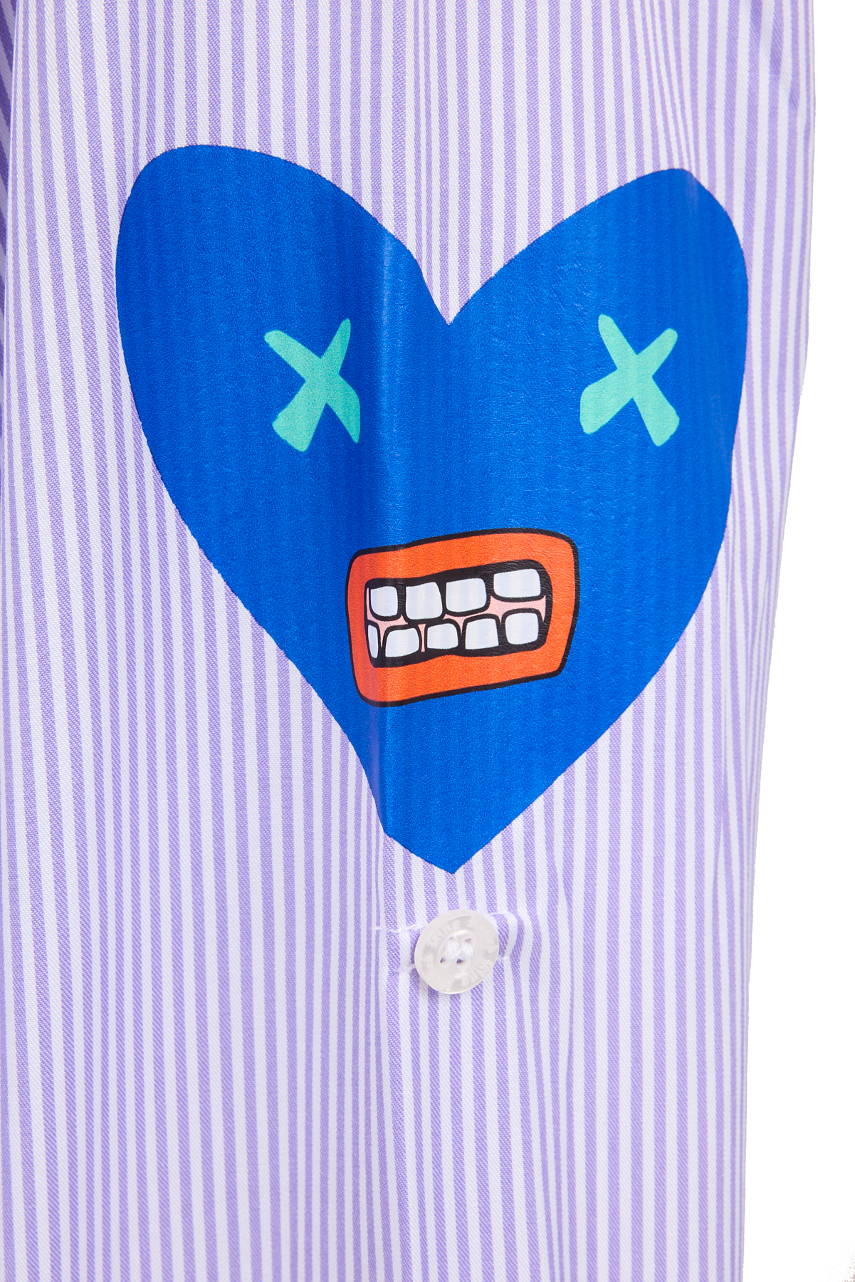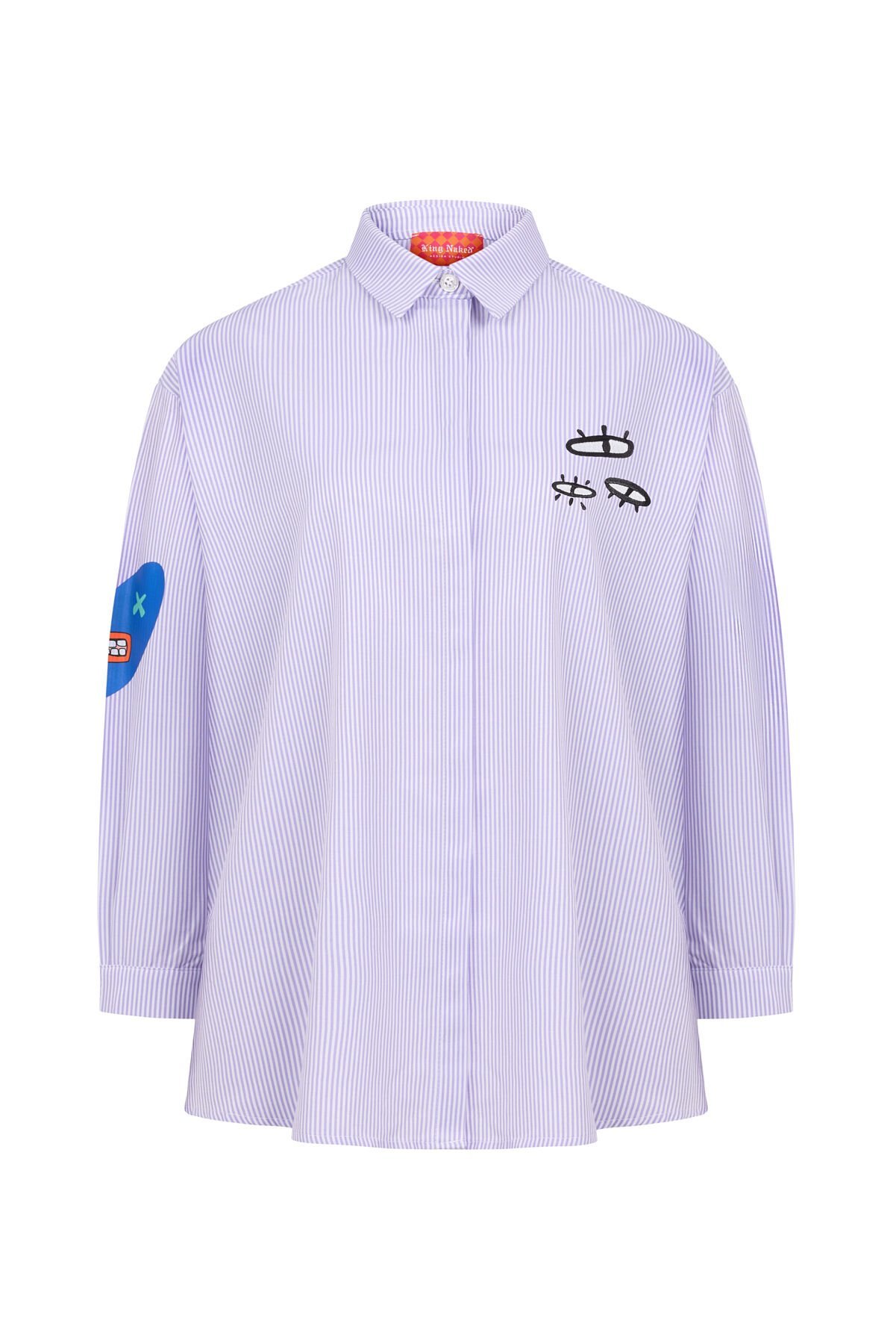İllüstrasyonlu Oversize Manşetli Gömlek