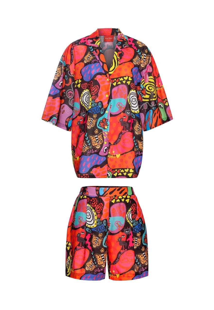 İllüstrasyonlu Gömlek & Şort 2'li takım